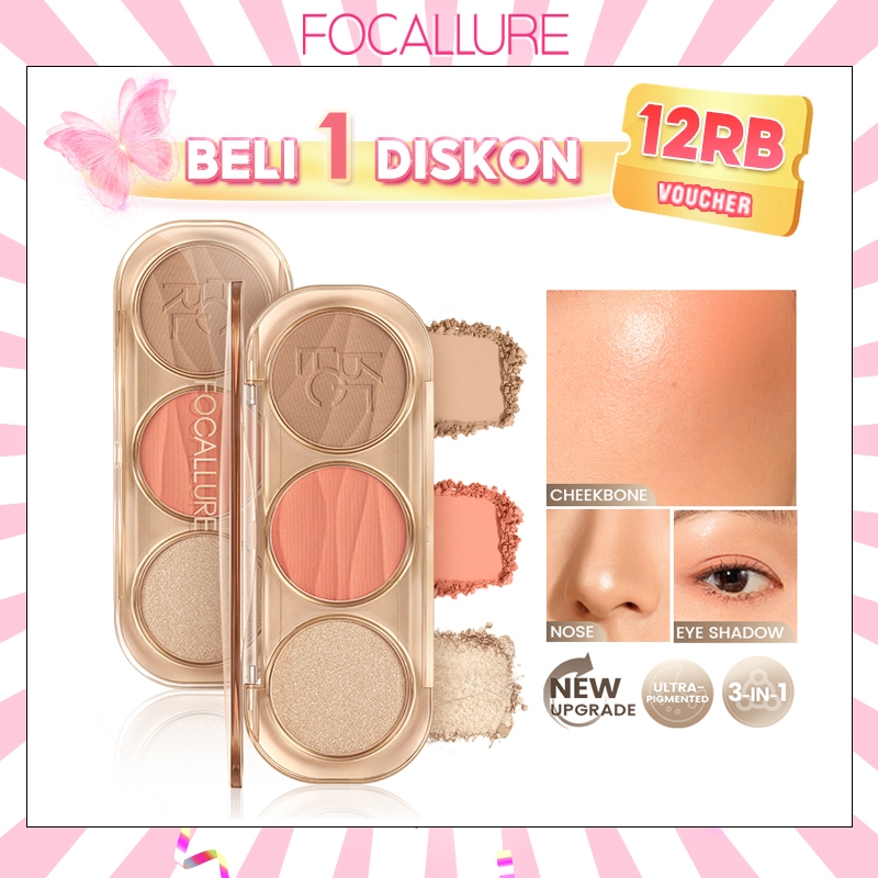 FOCALLURE 3-in-1 Pro-Sculpt Palette Highlighter & Contour & Blush Facial Shaping Waterproof Makeup