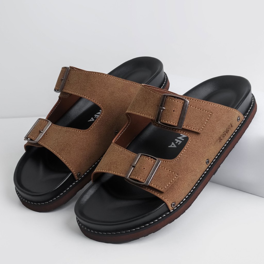 Kenfa - Nive Line Brown Sandal Formal Casual Pria Wanita Kulit Slide Slop Distro Stylist