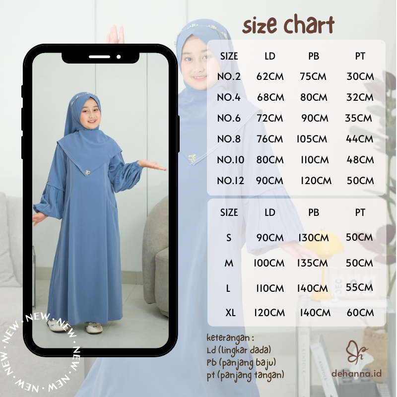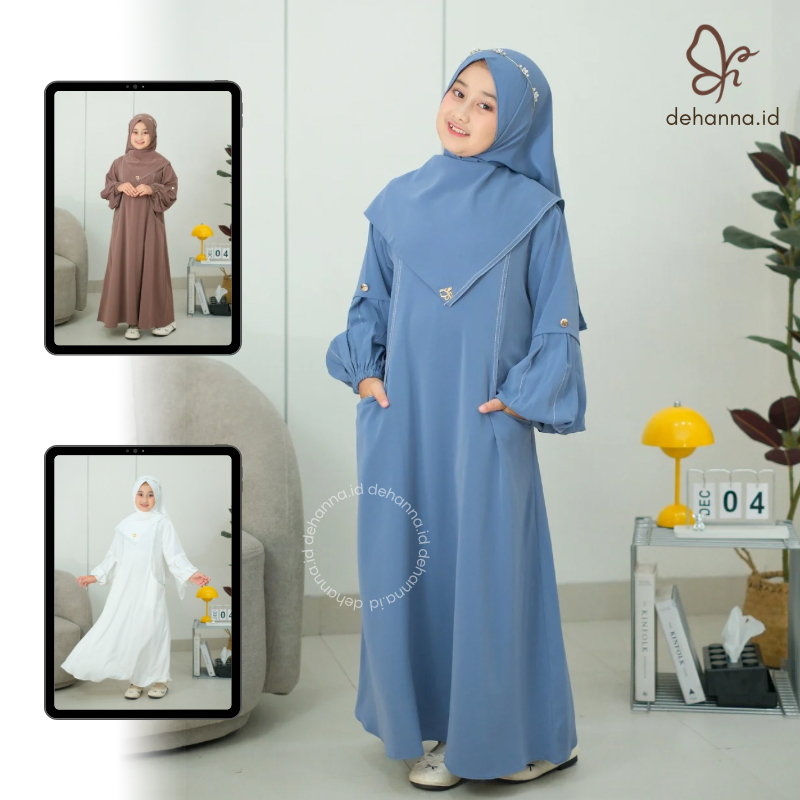 Shanum Abaya Anak Perempuan Bahan Marina Silk Anti UV + Hijab Pashmina Bisa Couple Ibu & Anak