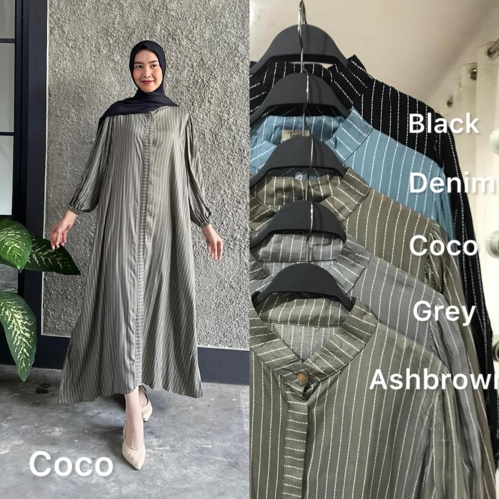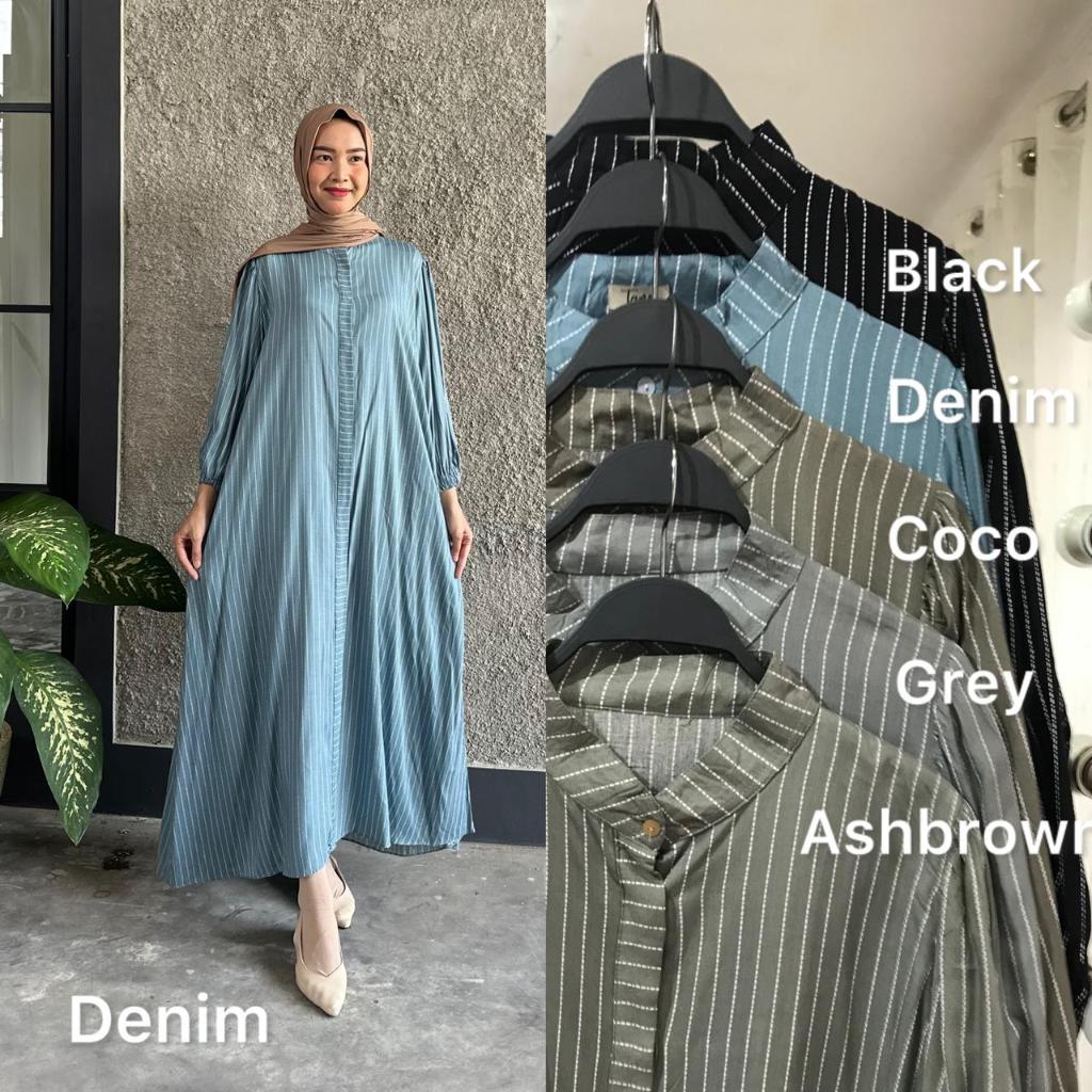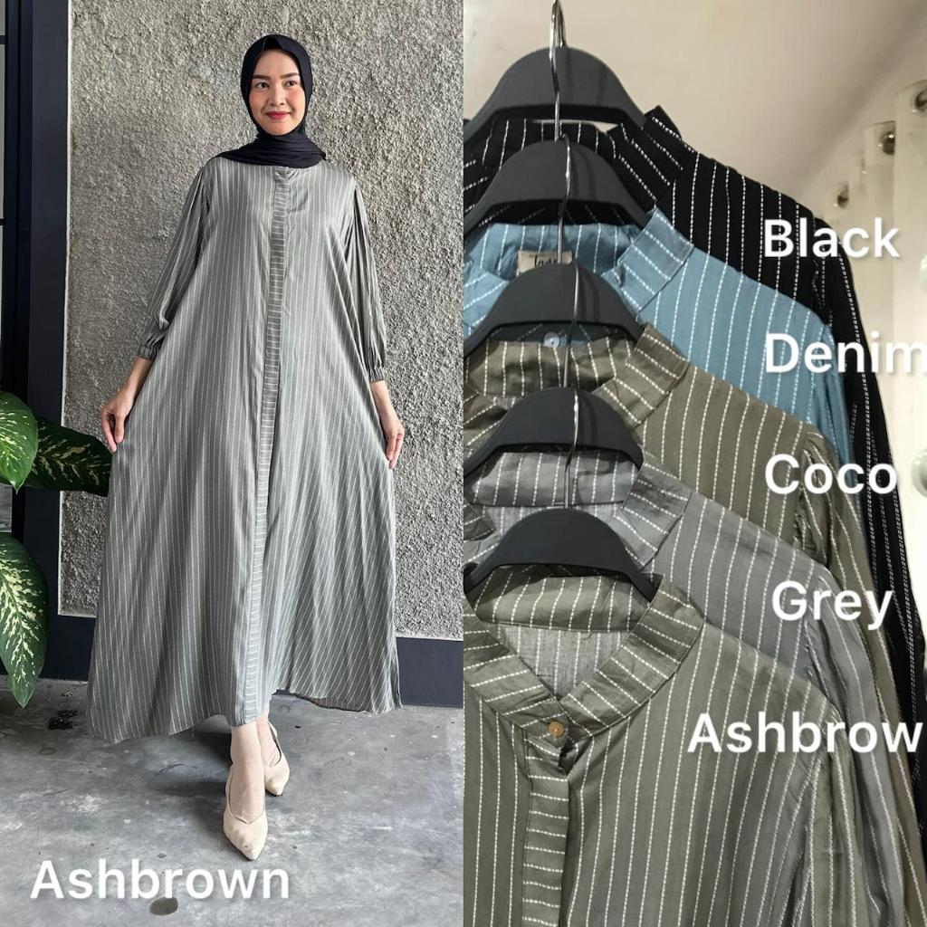 Bonny Dress Rayon Gamis ALine Busui Dress Lebaran Simple Abaya Stripe Salur