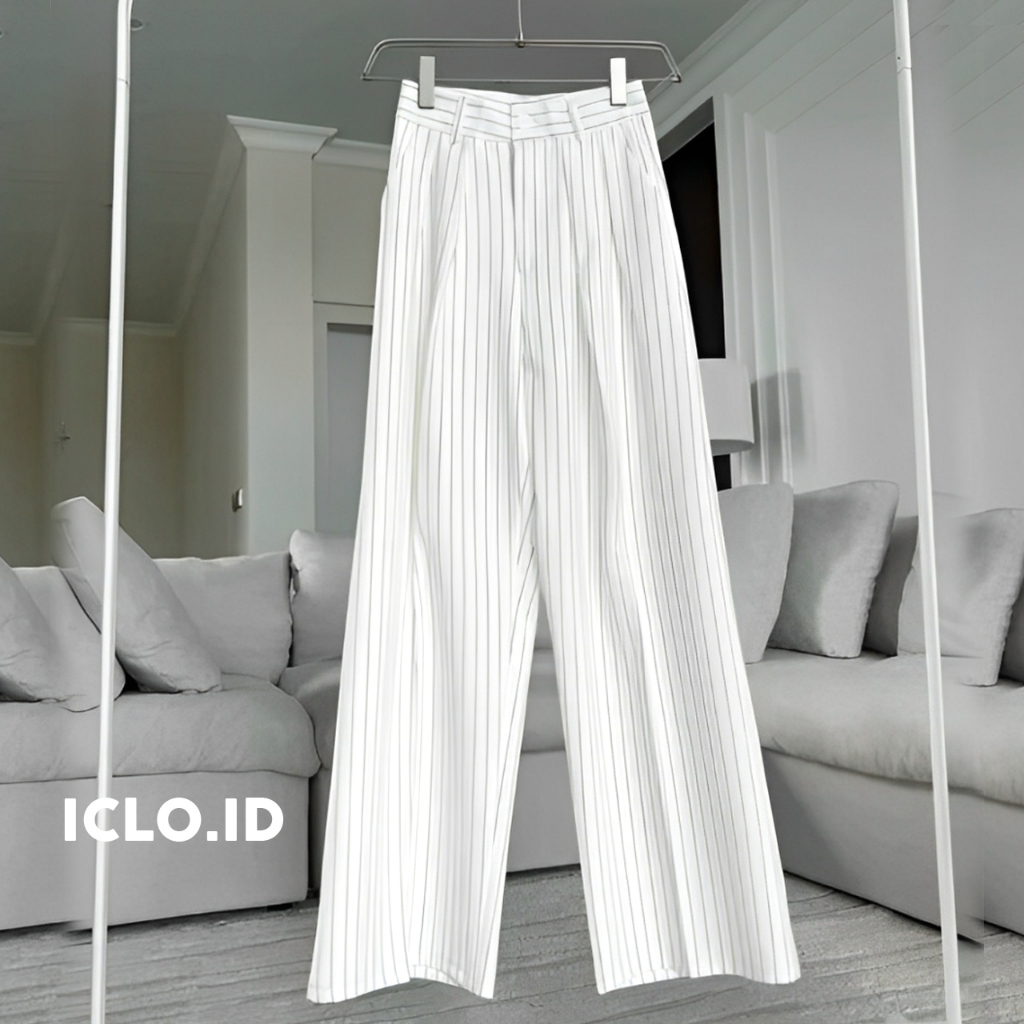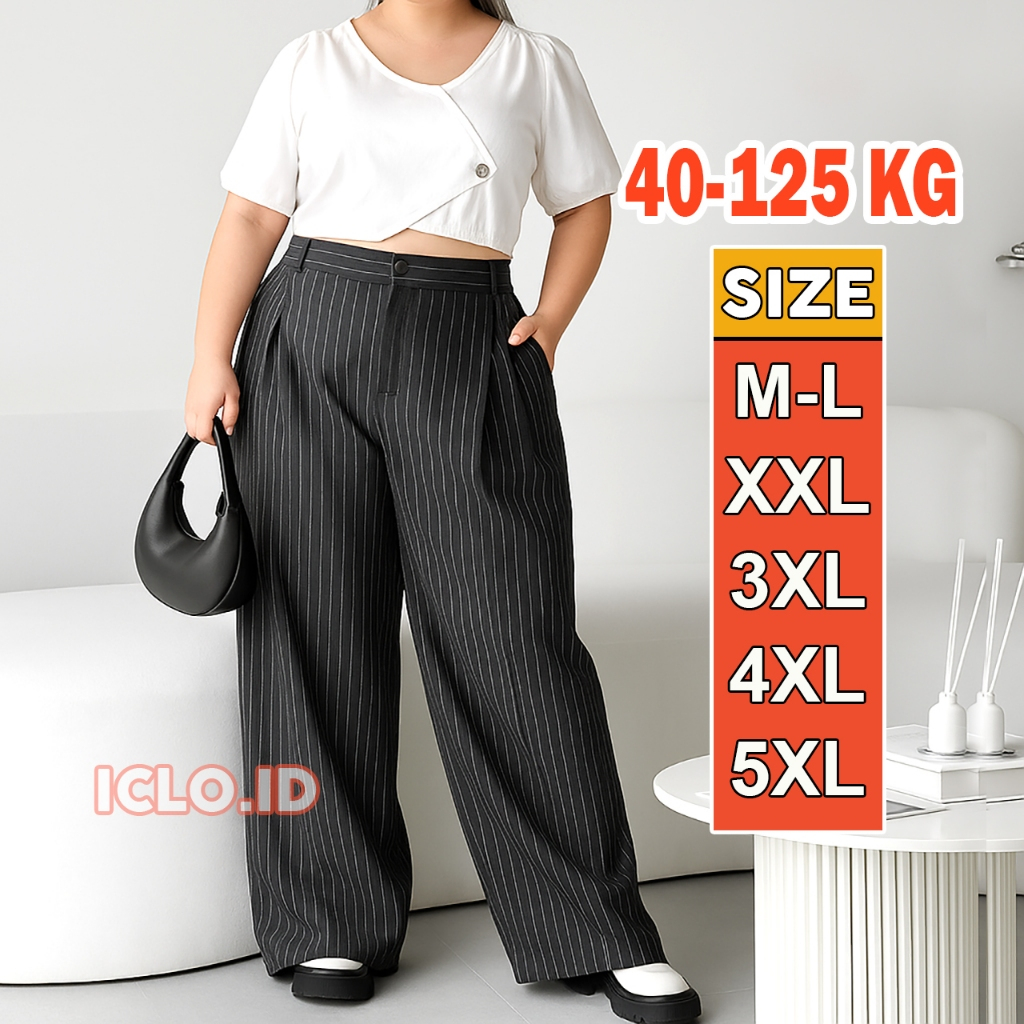 STRIPE PANTS - Loose Pants Stripe Celana Kulot Wanita JUMBO Anti Kusut Highwaist Premium - Celana Stripe Wanita Garis Salur