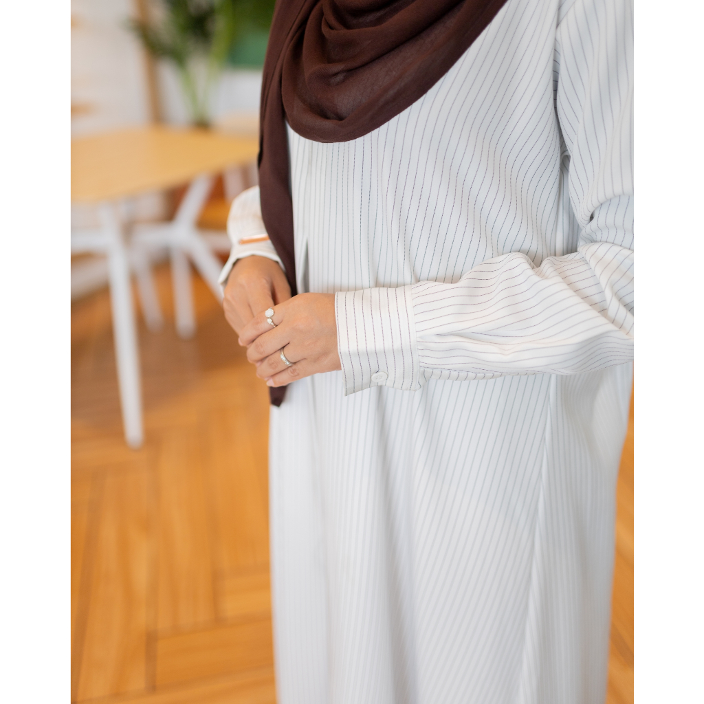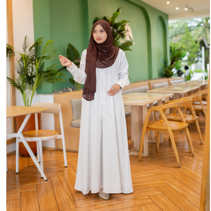 Medina Dress Abaya Gamis Haji & Umroh Elegan Busui Muslimah Bahan Salur Lembut Halus Flowy Adem