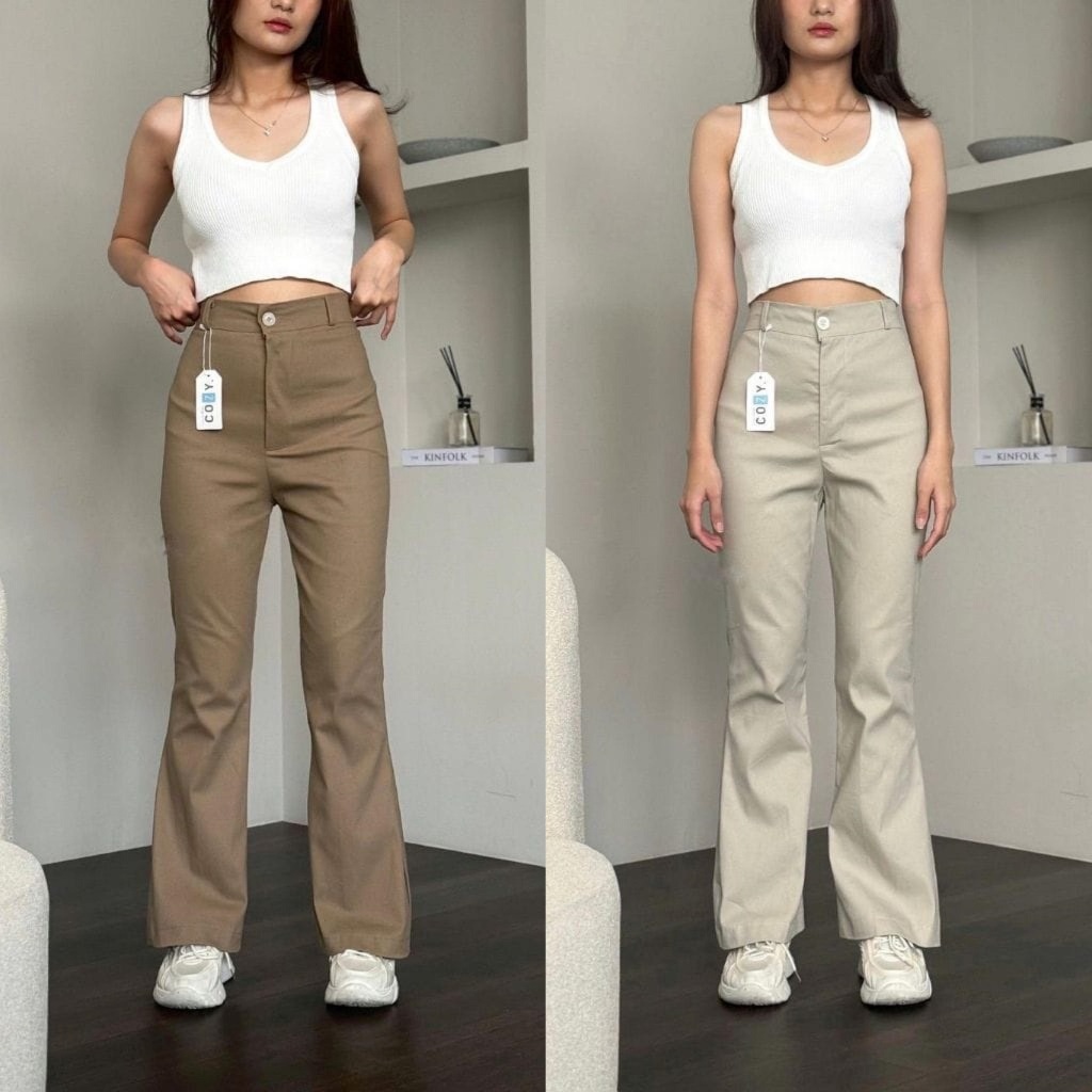 Flare Pants – Highwaist Kulot Cutbray - Celana Knator Formal Casual Chinos Streatch Melar