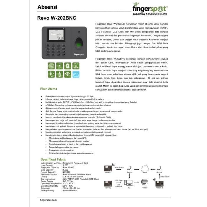 MESIN ABSENSI FINGERSPOT REVO W-202BNC WIFI DAN BATTERY