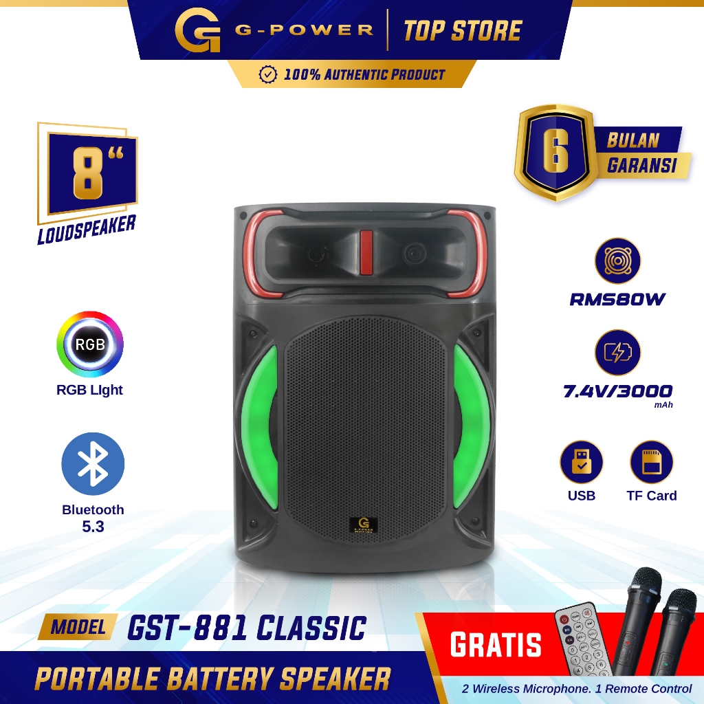 G-POWER Speaker Portable GST 881 Classic - Speaker Karaoke Jernih Bass Mantap Support Mic & USB Garansi Resmi