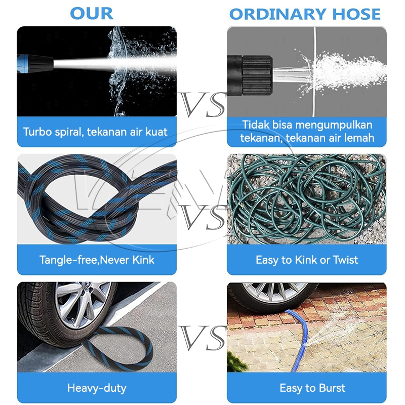 VENDOZ Mesin Pencuci Mobil Paket Cuci Mobil 3 model dengan Semprotan Air Bertekanan 10/15/20/30/40M Semprotan Selang Air