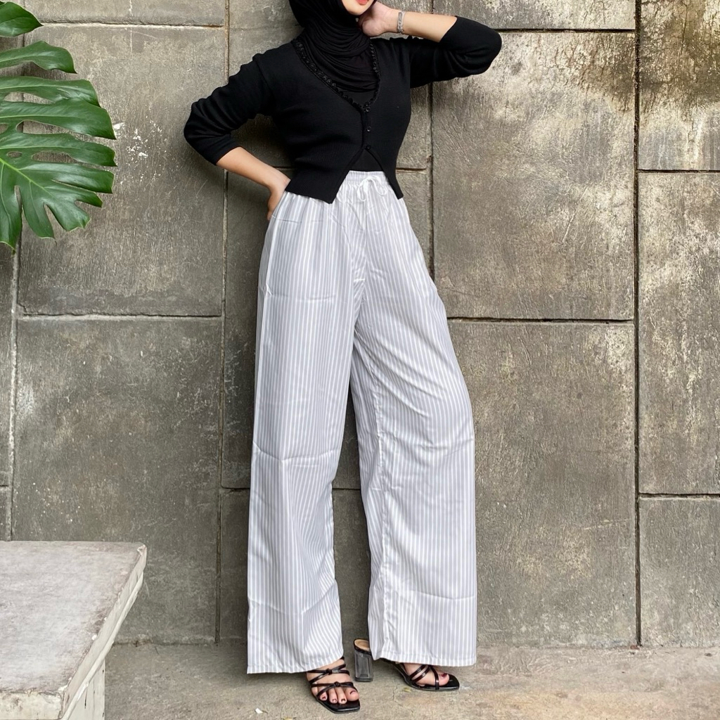 Everyday Pants - Stripe Pants - Celana Salur Kulot Jumbo Wanita Motif Salur Panjang Big Size