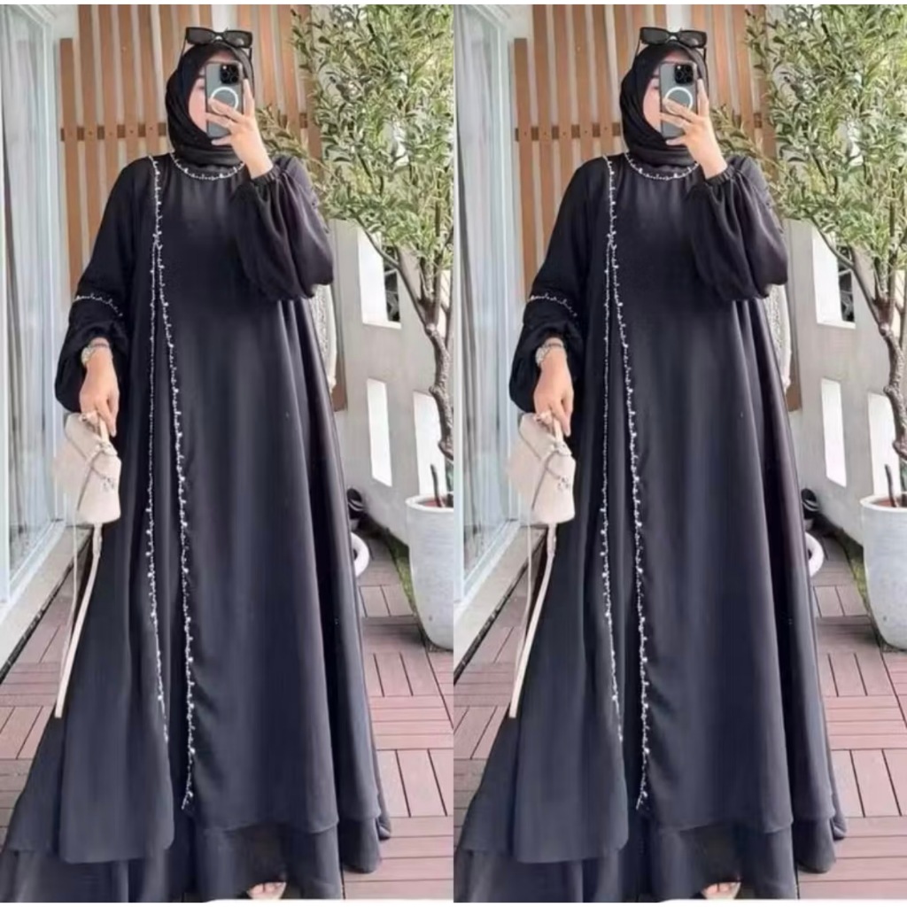 Aisyah Dress Payet Terbaru Gamis Ceruty Babydoll Abaya Turkey Lebaran 2026 Wanita Muslim Size SXXXL