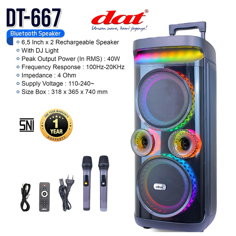 DAT DT-667 speaker bluetooth portabel speaker aktif full bass dilengkapi 2mic wireles karaoke