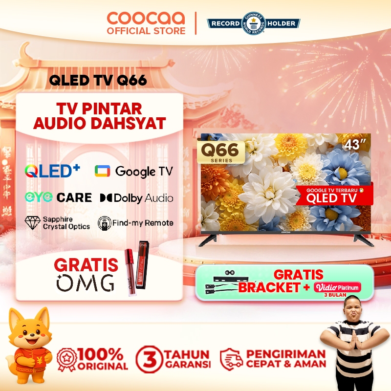 TERBARU COOCAA TV 43 inch Q66 - 2K QLED - Google TV - Sapphire Crystal Optics - HDR10/HLG - Eye Care - Dolby Audio - Find My Remote - Voice Control - (COOCAA 43Q66)