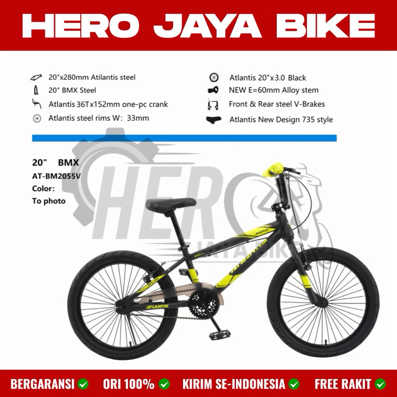 Sepeda Anak Laki BMX ATLANTIS RAPID 2055 Ukuran 20Inch Ban Kecil Rem V-Brake Serial Terbaru