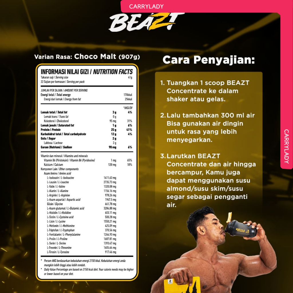 Fitlife Beazt Whey Protein Concentrate 2 Lbs 900 Gram 2Lbs Fit Life Suplemen Fitness Tinggi Protein