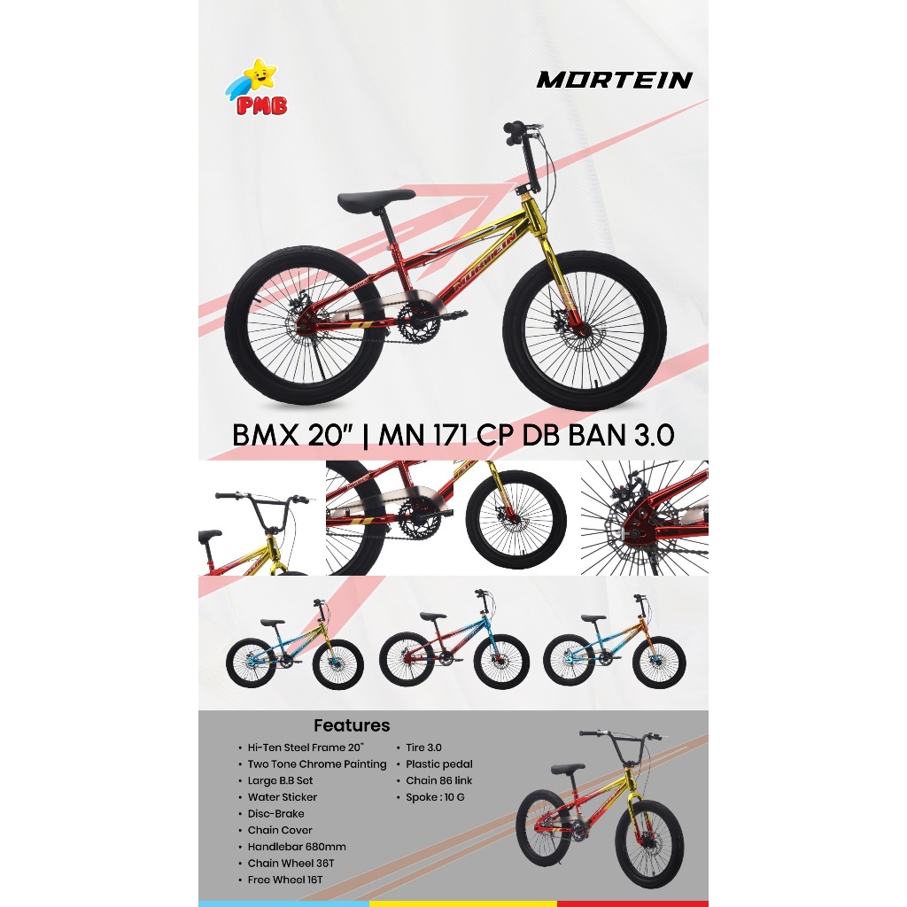 Sepeda BMX 20" MORTEIN FRAME CHROME MODEL TERBARU Ban JUMBO 2.50 (Anak Usia 8 tahun - Remaja)