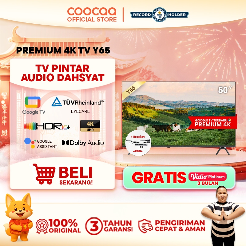 [+BRACKET] NEW COOCAA TV 50 inch Y65 - 4K GOOGLE TV - Dolby Audio - Eye Care - HDR10 - Find Remote - (COOCAA 50Y65)