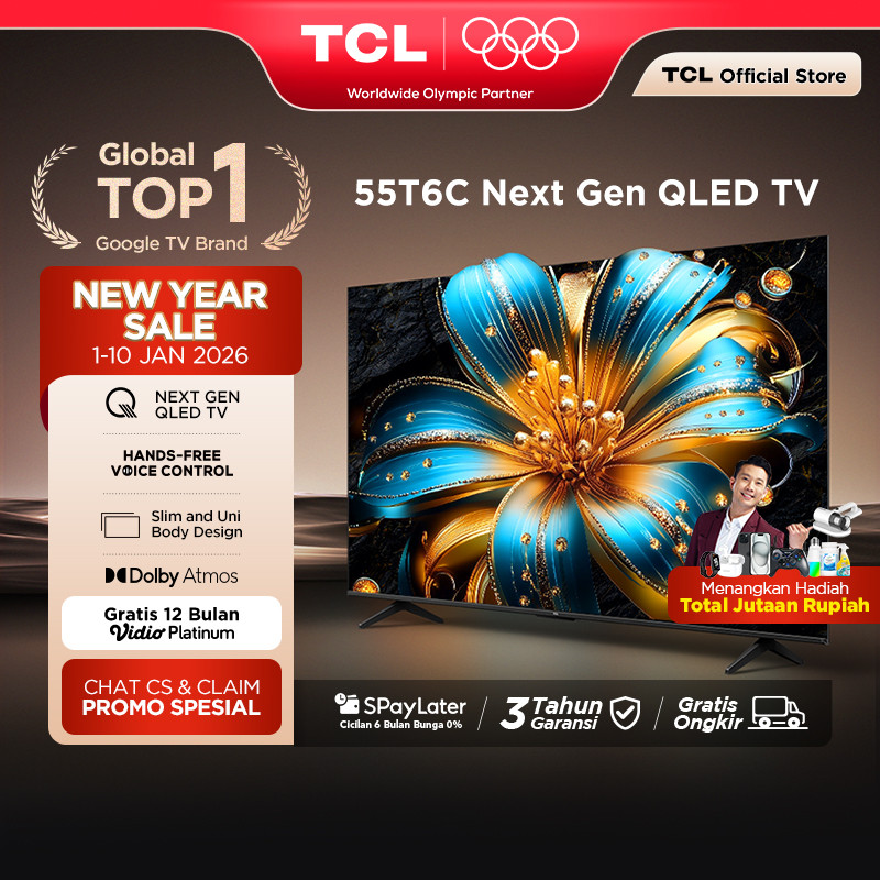 TCL Next Gen QLED 55 inch T6C - 4K Google TV - HVA Panel - HDR 10+ - Dolby Vision & Atmos - Google Assistant/Google Play/Netflix/Youtube/Disney+Hotstar - Smart Android 50 LED Digital (Model: 55T6C)