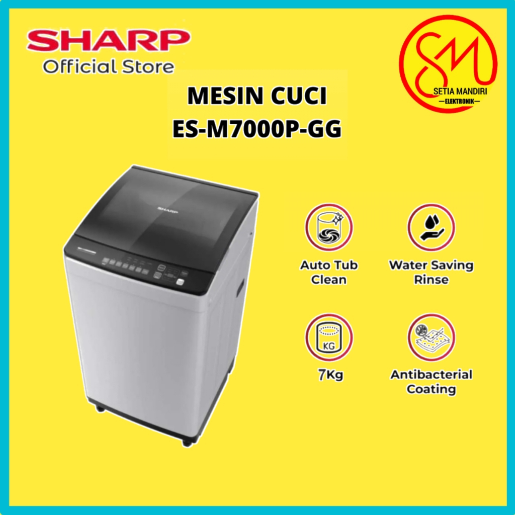 Mesin Cuci 1 Tabung SHARP ESM 7000 PGG 7KG Quick Wash Zero Pressure
