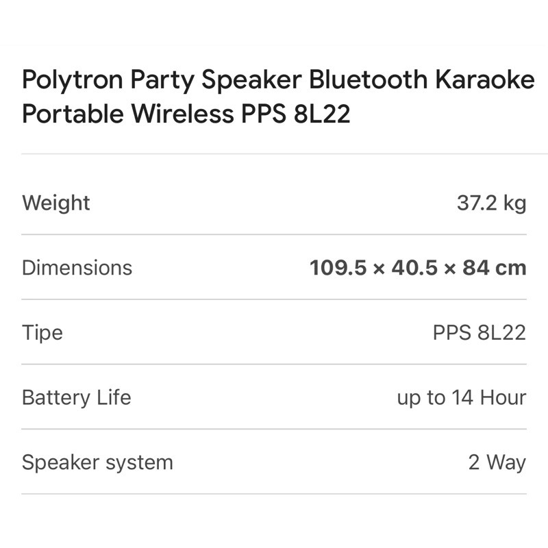 POLYTRON Party Speaker Karaoke Bluetooth Portable Wireless - PPS 8L22 10L22