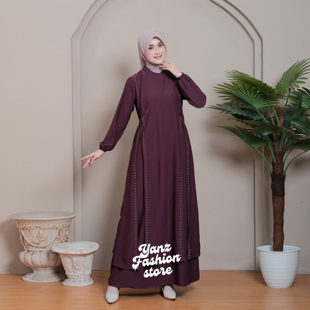 Invinov abaya gamis terbaru syahara dress bahan Sabrina anti UV premium mix payet swarovski baju muslim wanita muslimah
