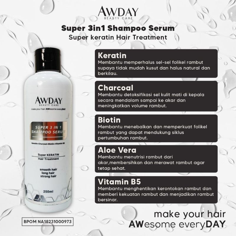 Shampoo awday serum hair treatment / shampo awday 3in1 BPOM