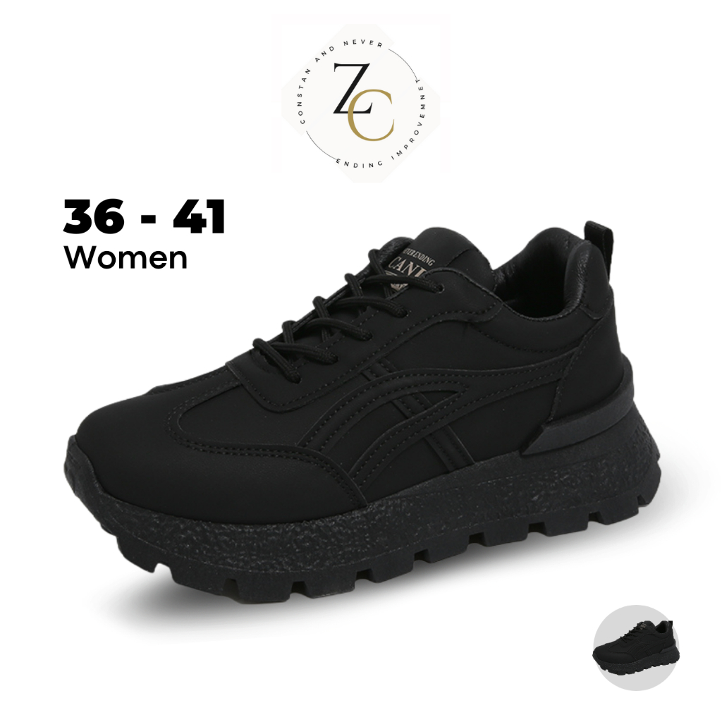 Kara Sepatu Sneakers Full Black Wanita Sepatu Hitam Polos Casual Sepatu Sekolah C9007