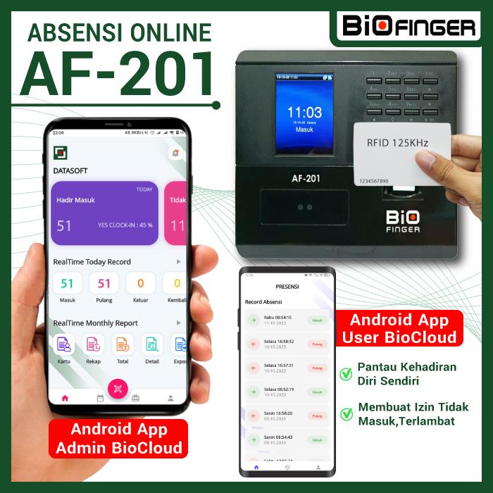 BIOFINGER AF-201 FINGERPRINT ABSENSI WAJAH JARI KARTU USB+LAN CLOUD ADMS ANDROID ONLINE PUSH SDK - ABSENSI SAJA