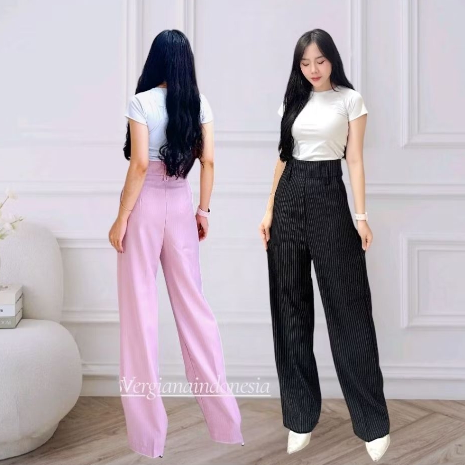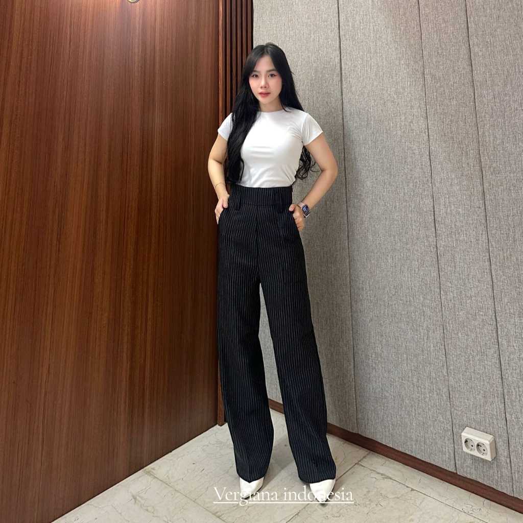 Vf - Diora Pants Stripe - Celana Stripe Kulot Loose Pants Highwaist Wanita Panjang Risleting Samping