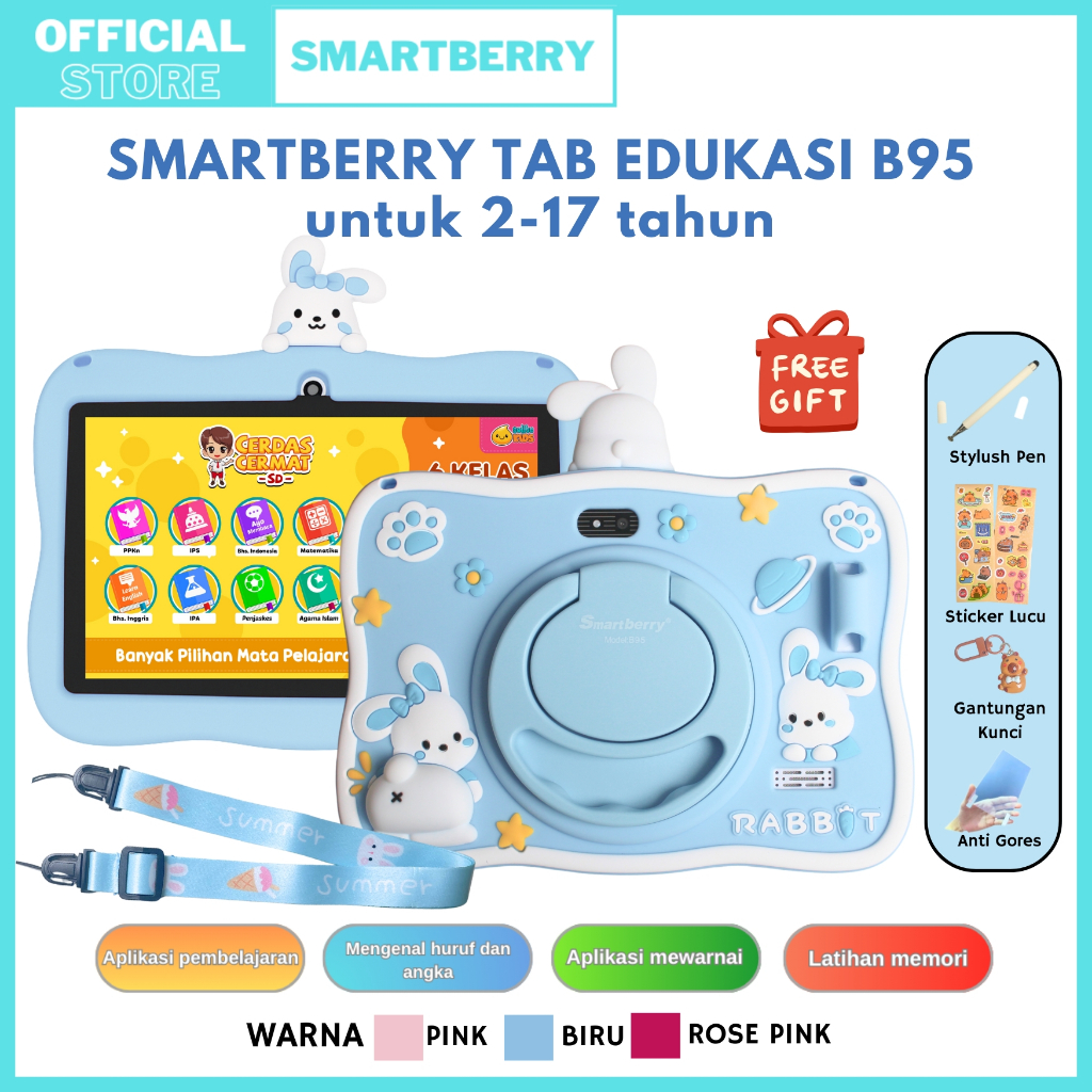 SMARTBERRY KIDS STUDY TAB B89 Plus / B93 / B95 / 4/128GB / Tablet Anak / Hadiah Anak / 7 Inch / PC / Android 13 / 2 Came