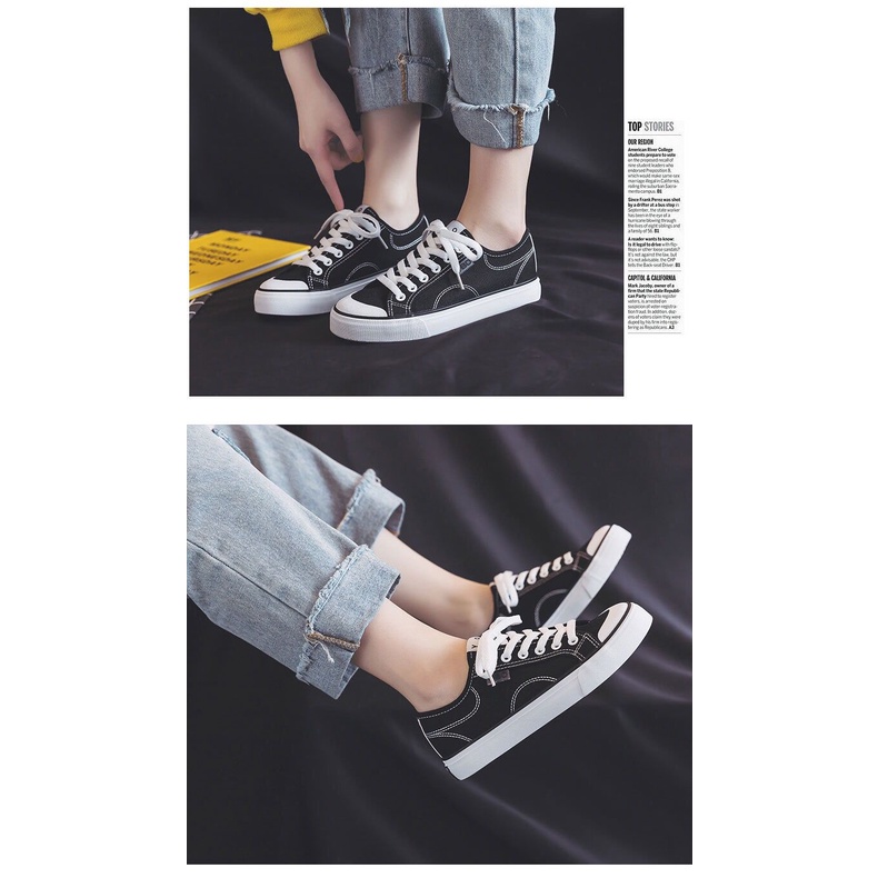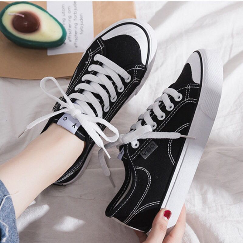 [ PAKAI DUS SEPATU ] IDEALIFE40 Sepatu Wanita Hitam Anak Sekolah Garis Sneakers cewek Korea Sport Kasual import Terlaris