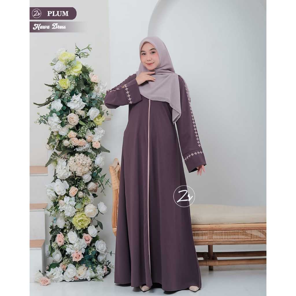 ABAYA HAWA DRESS BY ZR GAMIS POLOS DAILY AKSEN BORDIR CANTIK MEWAH TERBARU