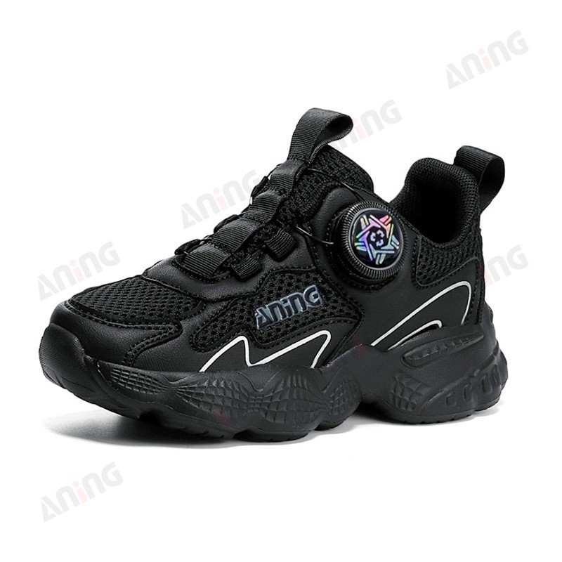 ANING ANINGBOY-Sepatu anak-anak sepatu kets dasi bebas hitam sepatu sekolah yang lembut dan menyerap keringat