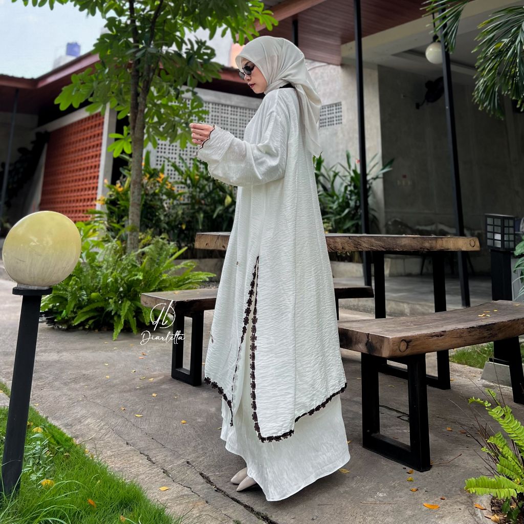 Jelita Set Jumbo Rok Tunik Embroidery Abaya Malay Kurung Polo Linen Busui Friendly by Diarletta