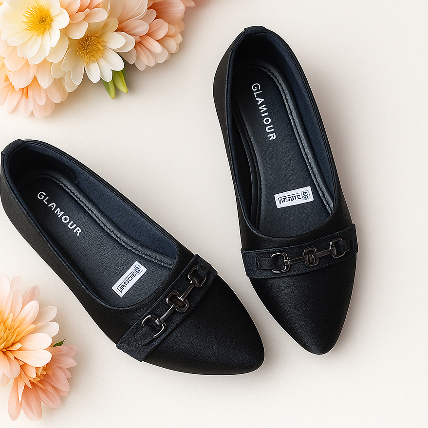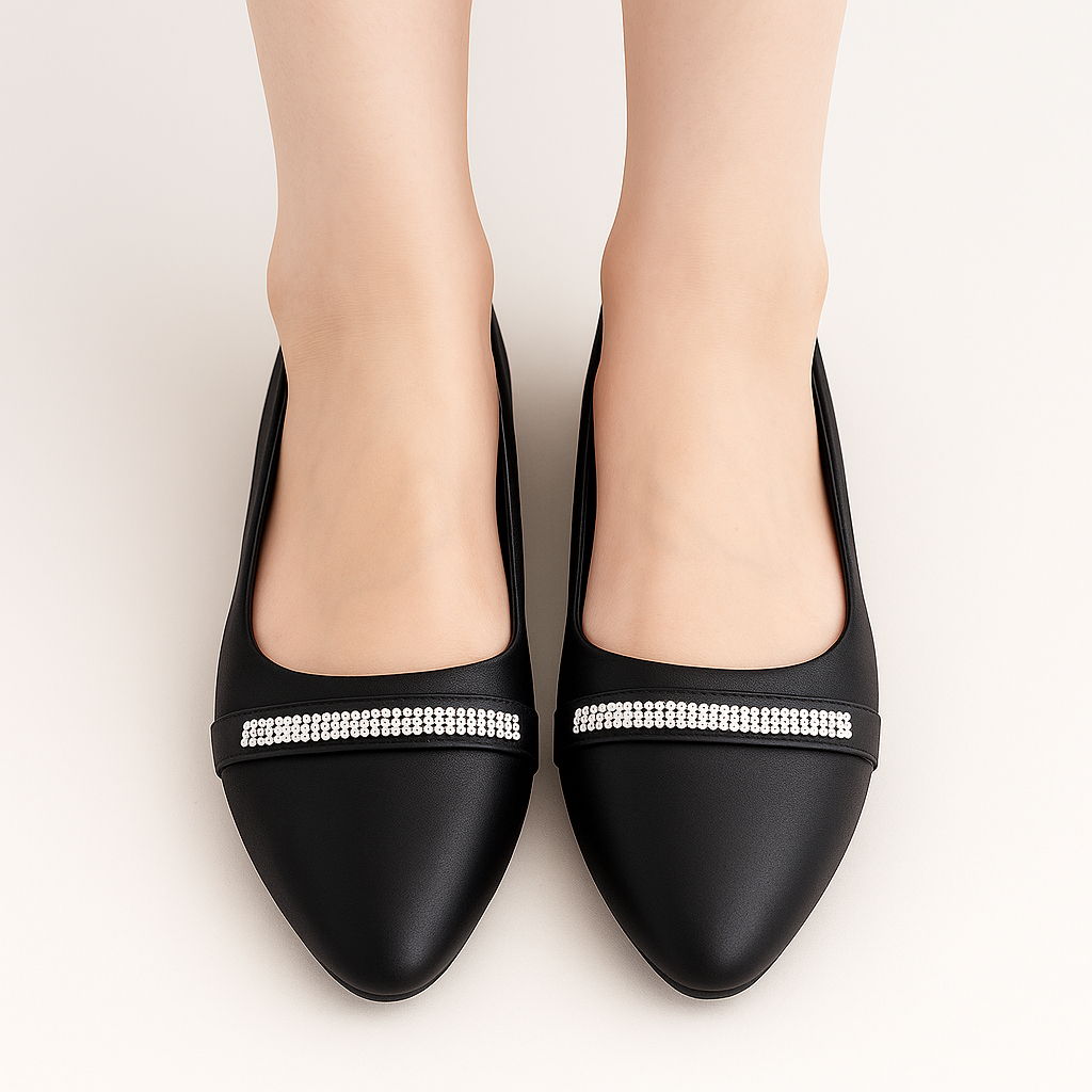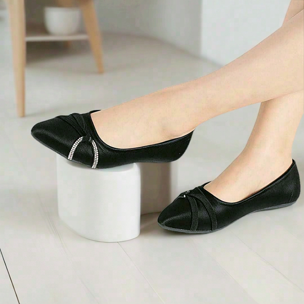 Flatshoes Wanita Elegan Hitam | Anti Slip Nyaman | Sekolah, Kerja, Kuliah, Pesta.