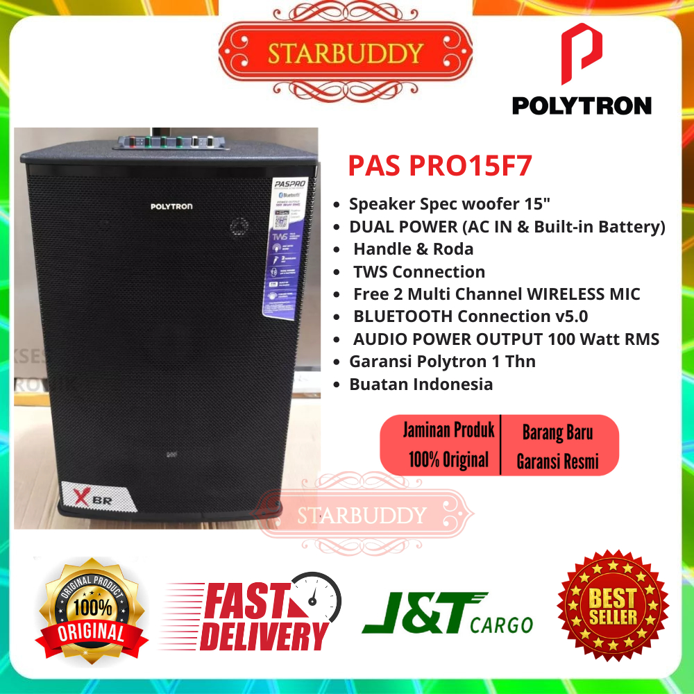 SPEAKER PORTABLE POLYTRON PASPRO 15F7 XBR BLUETOOTH WIRELESS KARAOKE 15 INCH (INSTANT)