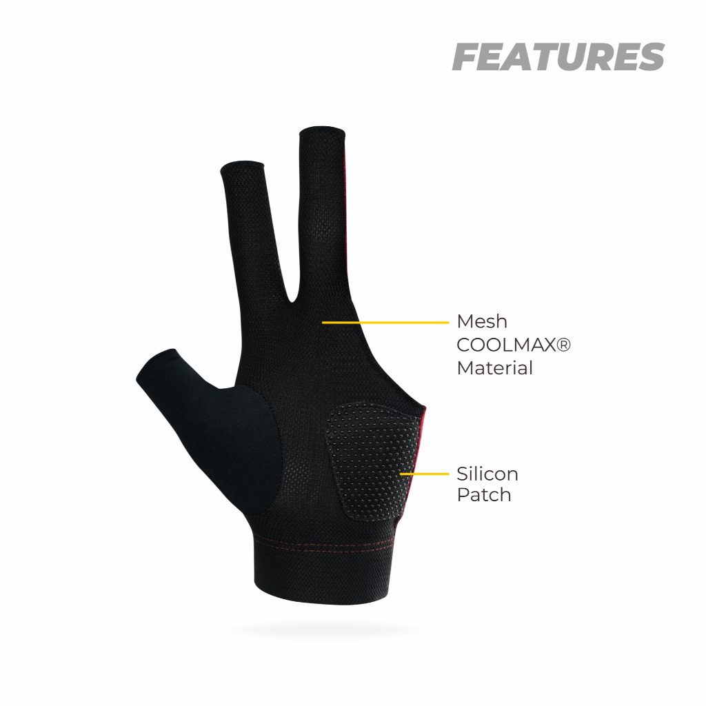Zuna Gloves Billiard Uni Half Finger Dezz / Sarung Tangan Billiard Open Finger Sebelah Kiri