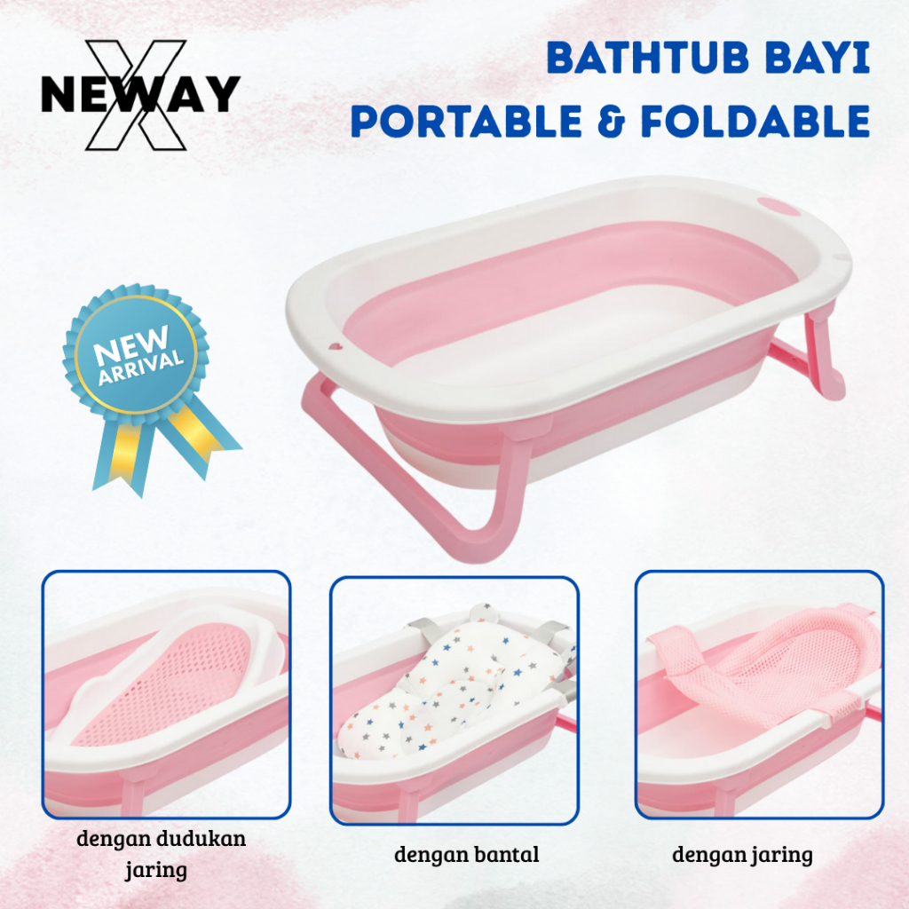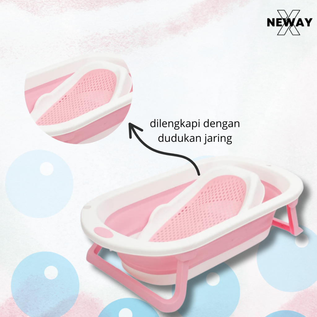Bak Mandi Bayi Newayx Foldable Lipat Baby Bathtub New Born Anak Dengan Alas Bantal Dudukan