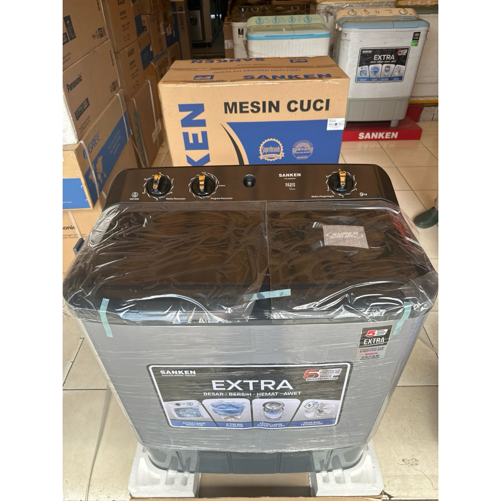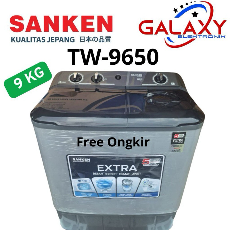 Sanken TW-9650 Gy Mesin Cuci 2 Tabung Twin Tub 9 Kg Resmi Low Watt