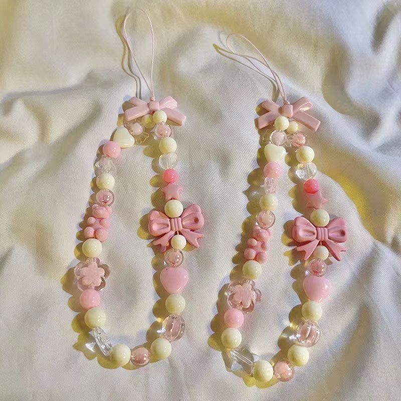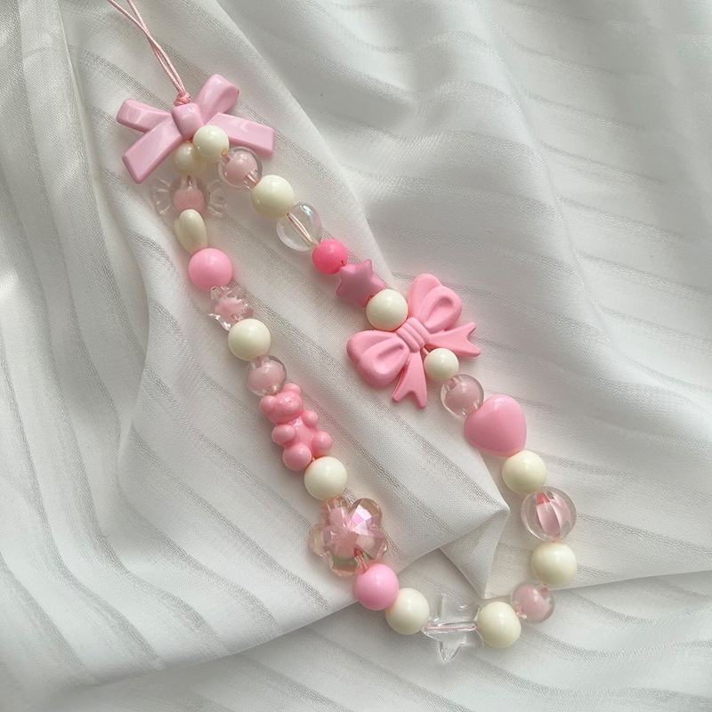 Gantungan Hp Korean Cute Charm Bear Love Heart Bowknot Phone Strap Chains For Women Girls Jewelry Strap Pink Beaded Lany
