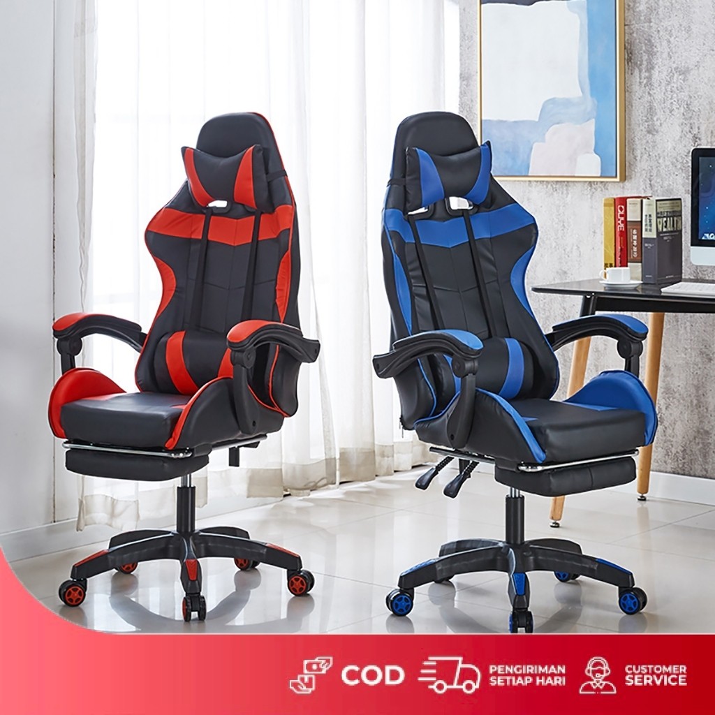 KUKAHOME Kursi Gaming Dengan Sandaran Kaki Ergonomis Kursi Gamers Hidrolik Murah Nyaman Kantor