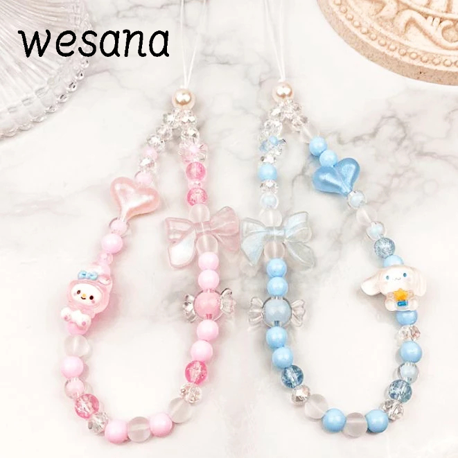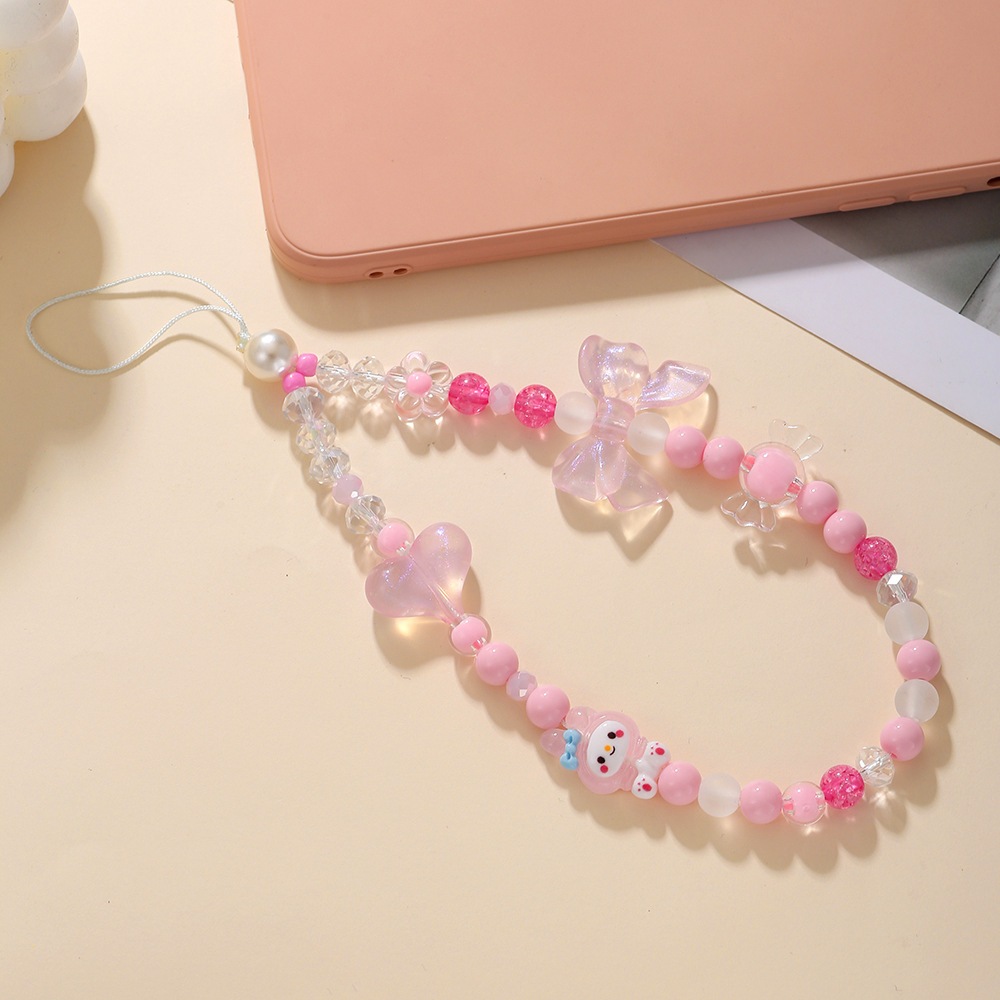 Gantungan Hp Lucu Sanrio Kuromi Melody Phone Straps Manik-Manik Telepon Lanyard Hp Transparan -We