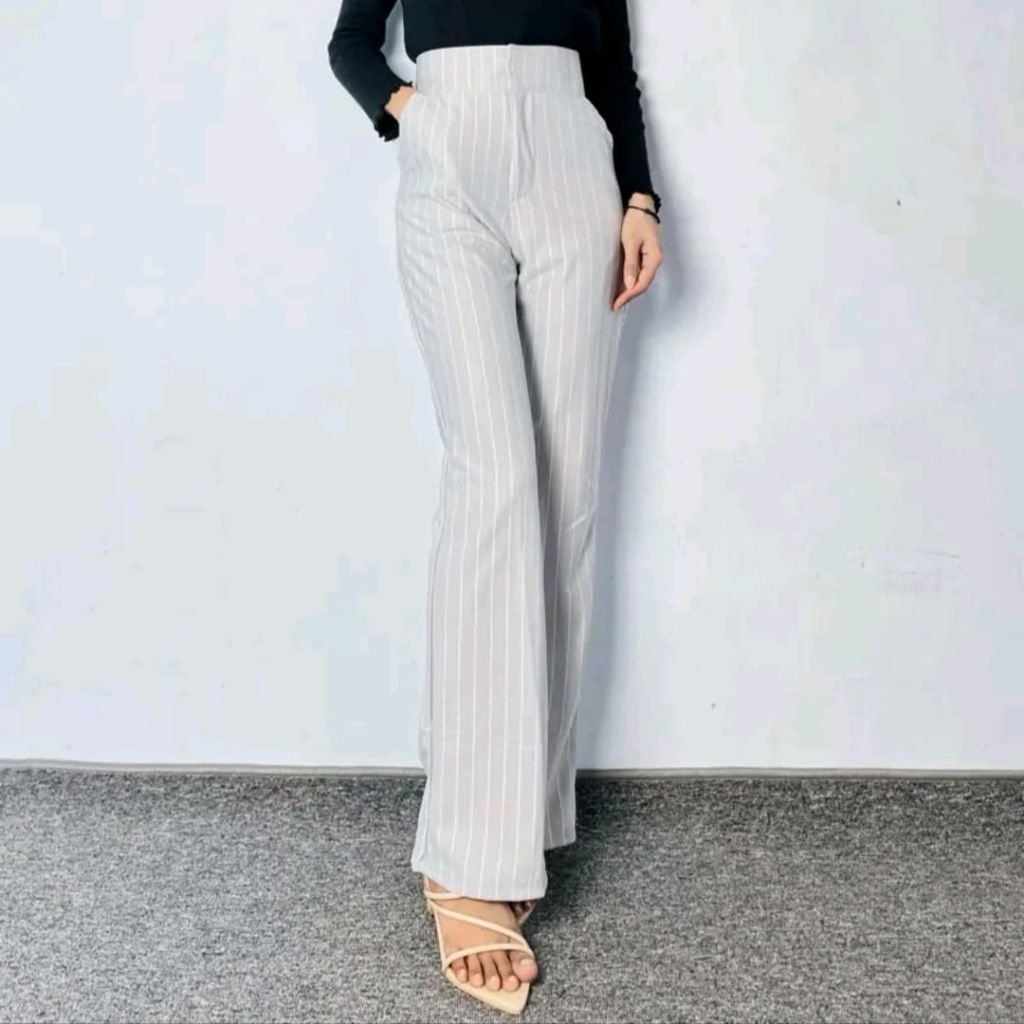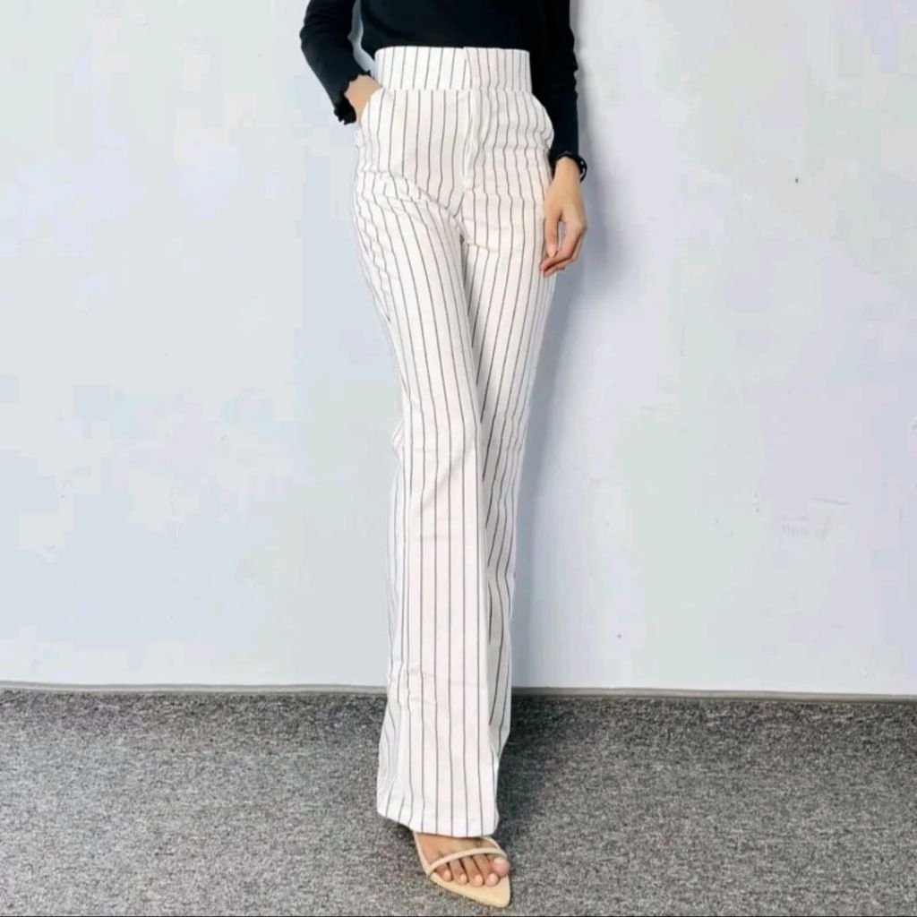 Flare Pants Stripe Bangkok - Celana Semi Cutbray Knit Premium - Cutbray Highwaist Pants - Celana Wanita Semi Cutbray