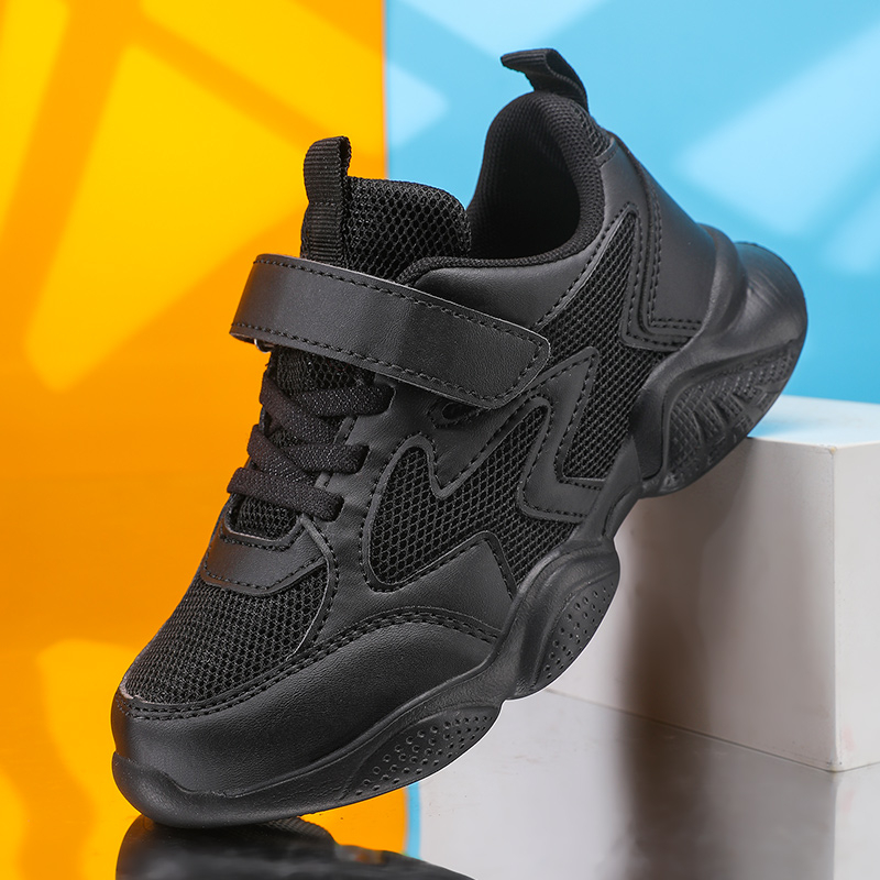 ANINGAINGBOY-Sepatu Sekolah Anak Ukuran Sneakers Hitam Velcro sepatu anak-anak 28-37 Full Hitam