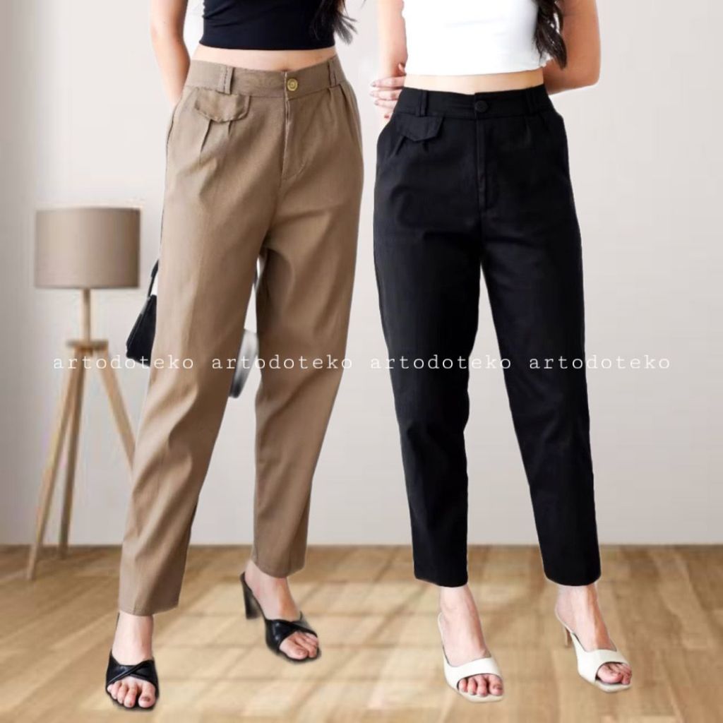 Ara Basic Pants Highwaist Celana Baggy Angkle Pants Celana Kantor Loose Pants