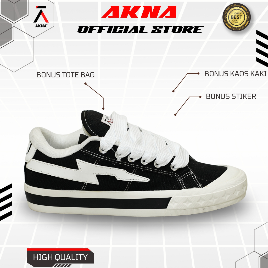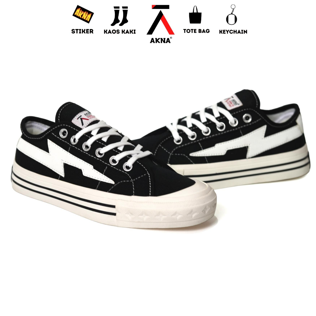 AKNA - Sepatu Aksara Low Black White Pria Wanita