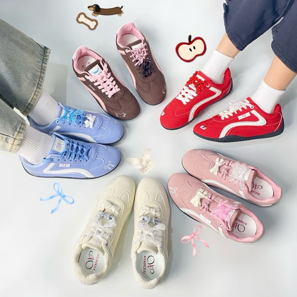AVANCEID BALLERIES Sepatu Sneakers Wanita Casual Sepatu Outdoor Fashion Pink Coquette Ribbon Silver