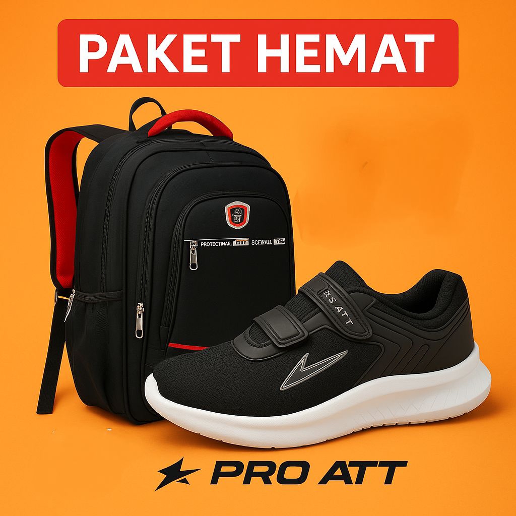 Sepatu Sneakers Sekolah Anak Laki Perempuan + Tas Ransel PRO ATT Paket Bundling