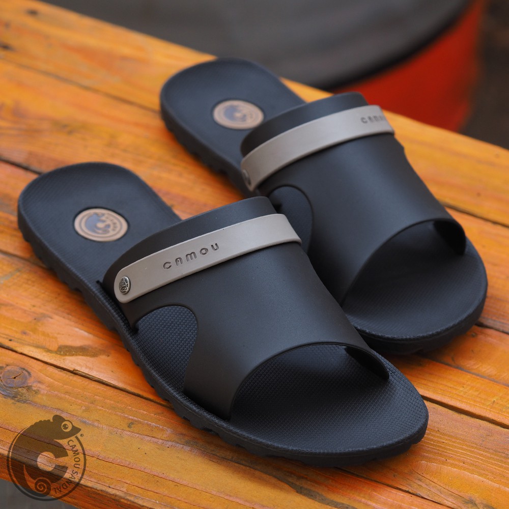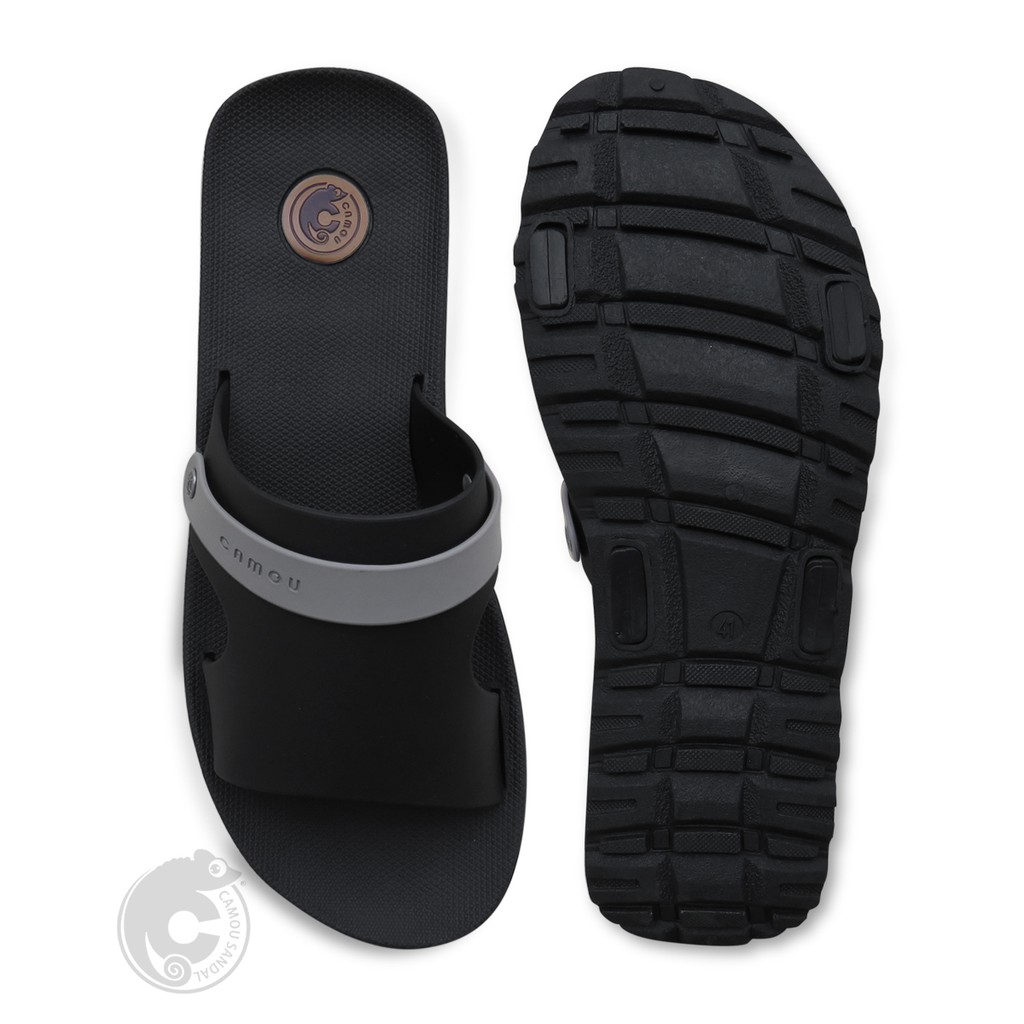 Camou Domilea Bundling Couple Sandal Jepit Pria & Wanita - Dominic Hitam Abu & Milea Hitam