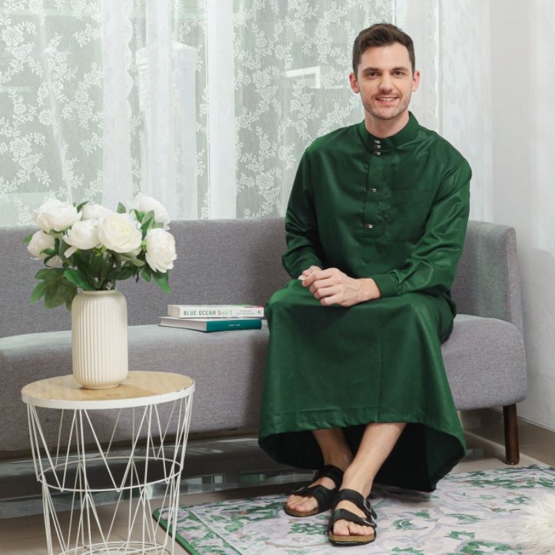 Family Muslim - Jubah Gamis Pria Usia Mulai 14 Tahun Dewasa Lengan Panjang Madani Navy