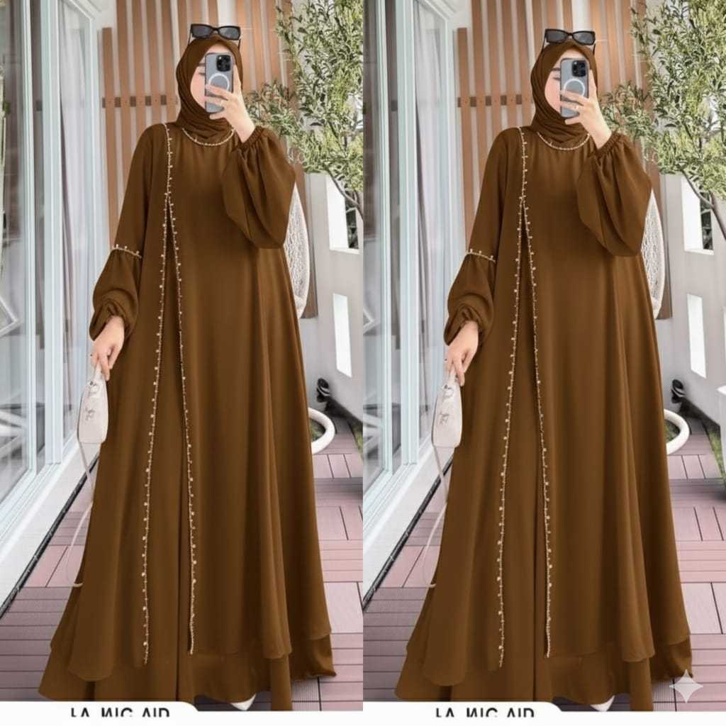 Natasya Dress Ceruty Babydoll Full Furing Pakaian Wanita Muslimah Abaya Kekinian Aplikasi Mute Mewah