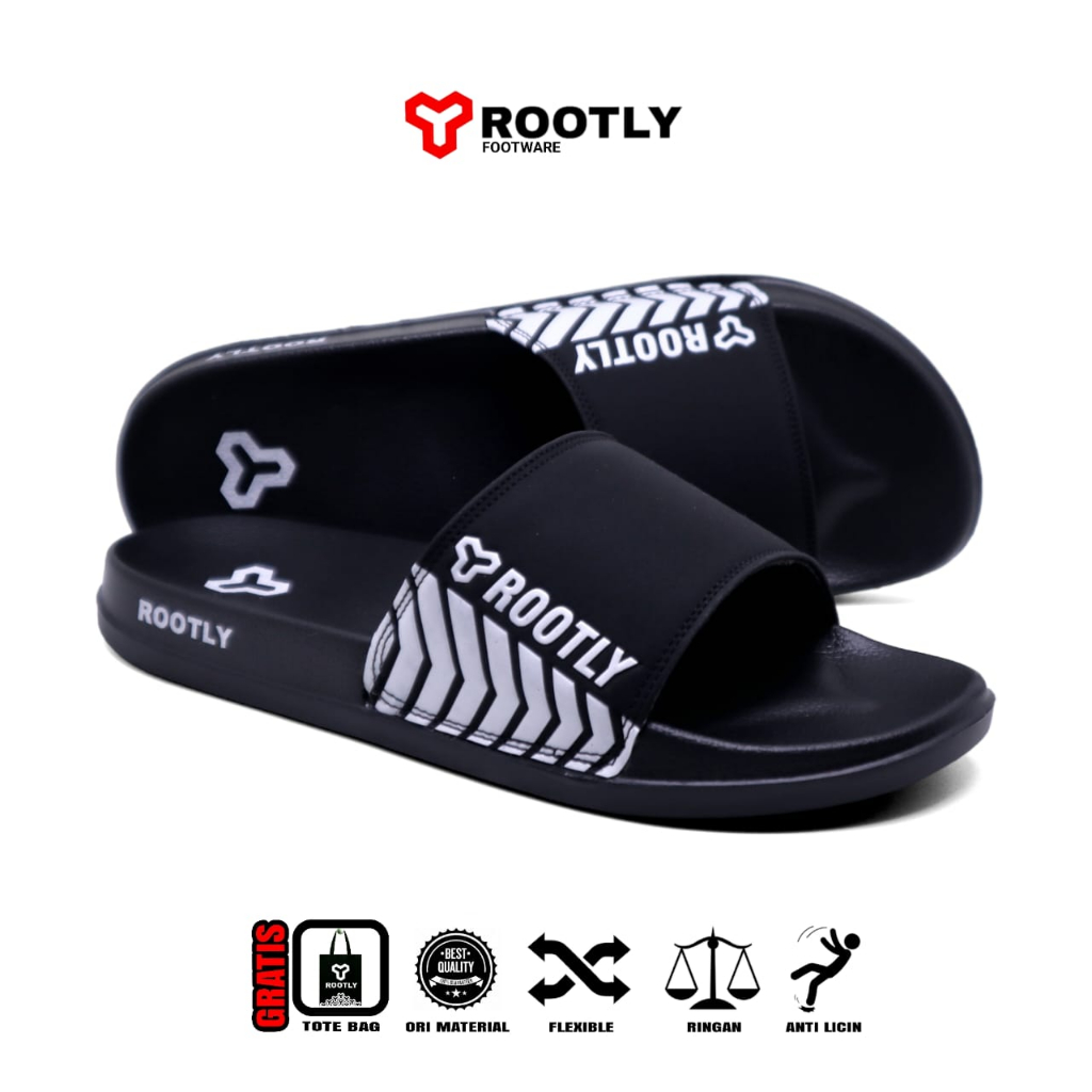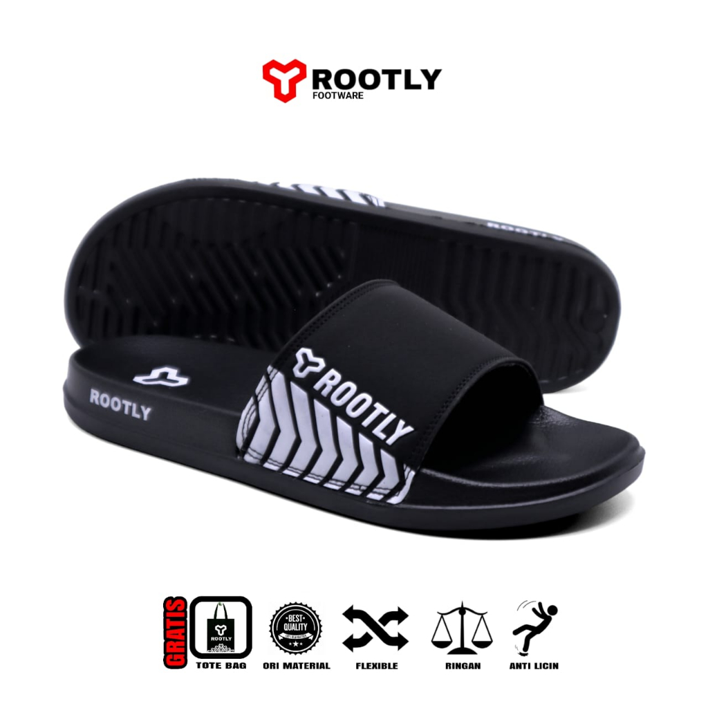PROMO Rootly - Sandal Slide Pria Simple Trendy Black White NEW 2026
