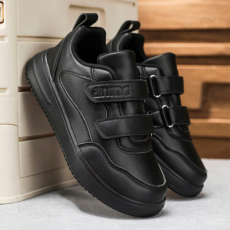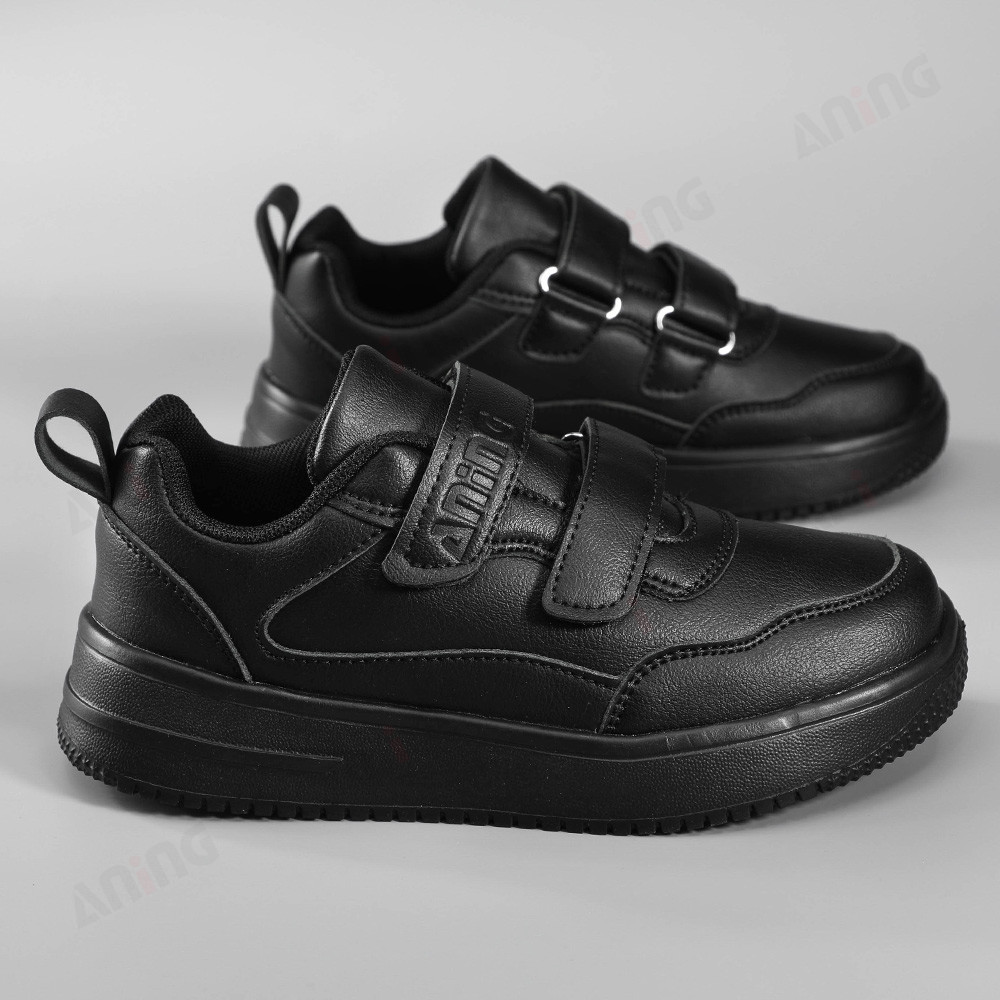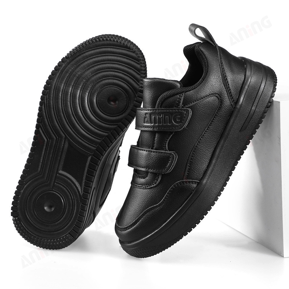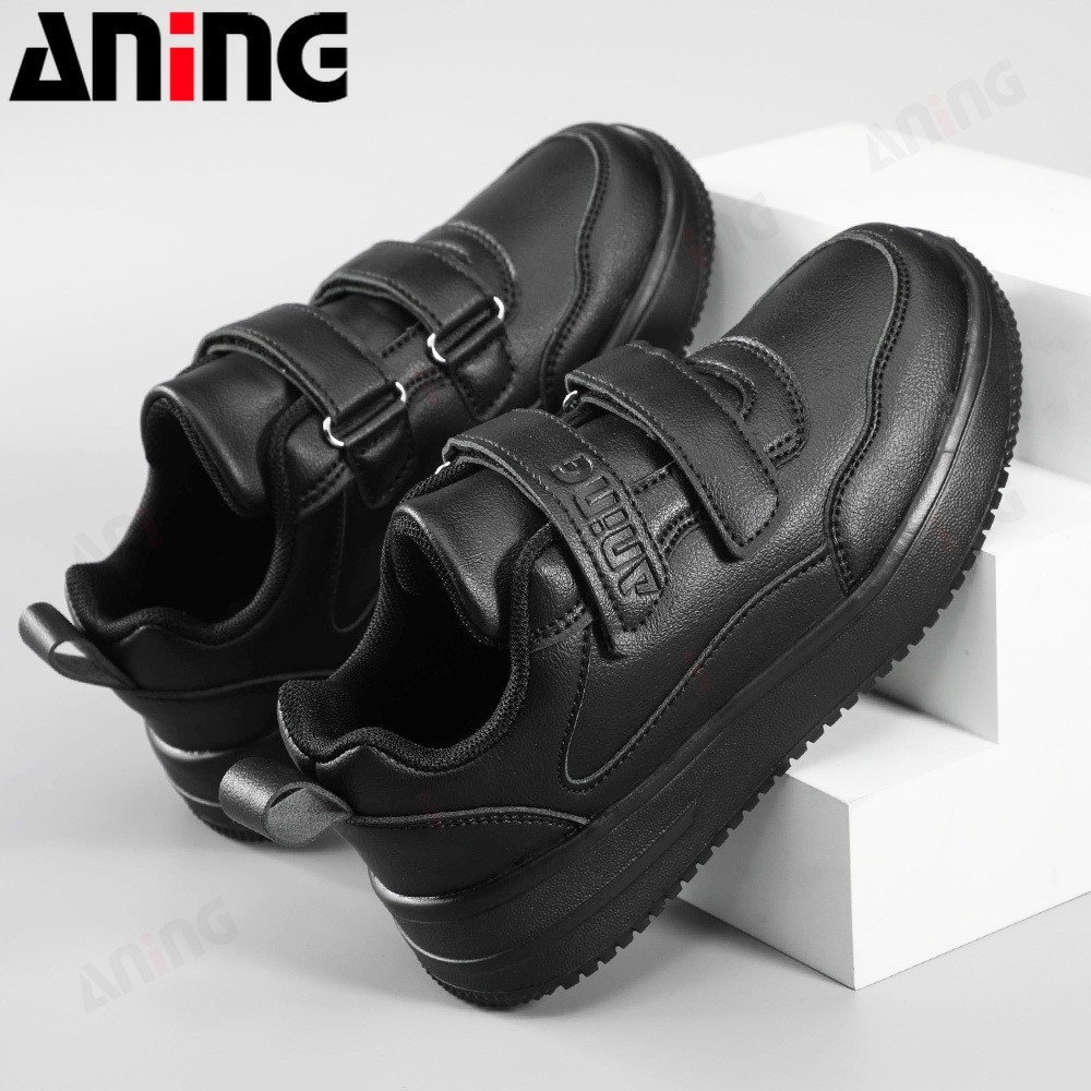 ANINGBOY-Sepatu anak laki-laki sepatu sekolah siswa hitam sepatu olahraga kasual bahan PU kulit